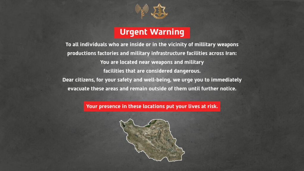 Israel acaba de fazer algo que dificilmente você verá outro país fazer: As Forças de Defesa de Israel emitiram um alerta de evacuação para civis iranianos que residam ou transitem próximos a instalações militares!